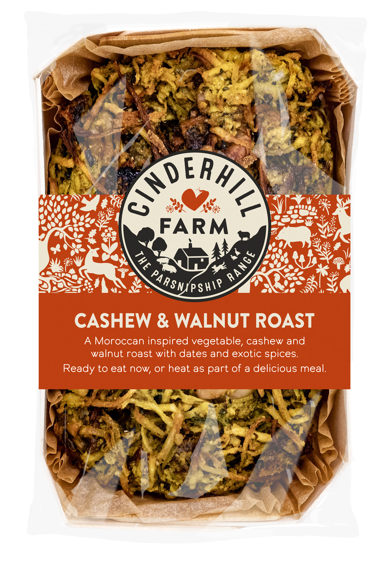 A Moroccan inspired vegetable, cashew and walnut roast with dates and exotic spices.