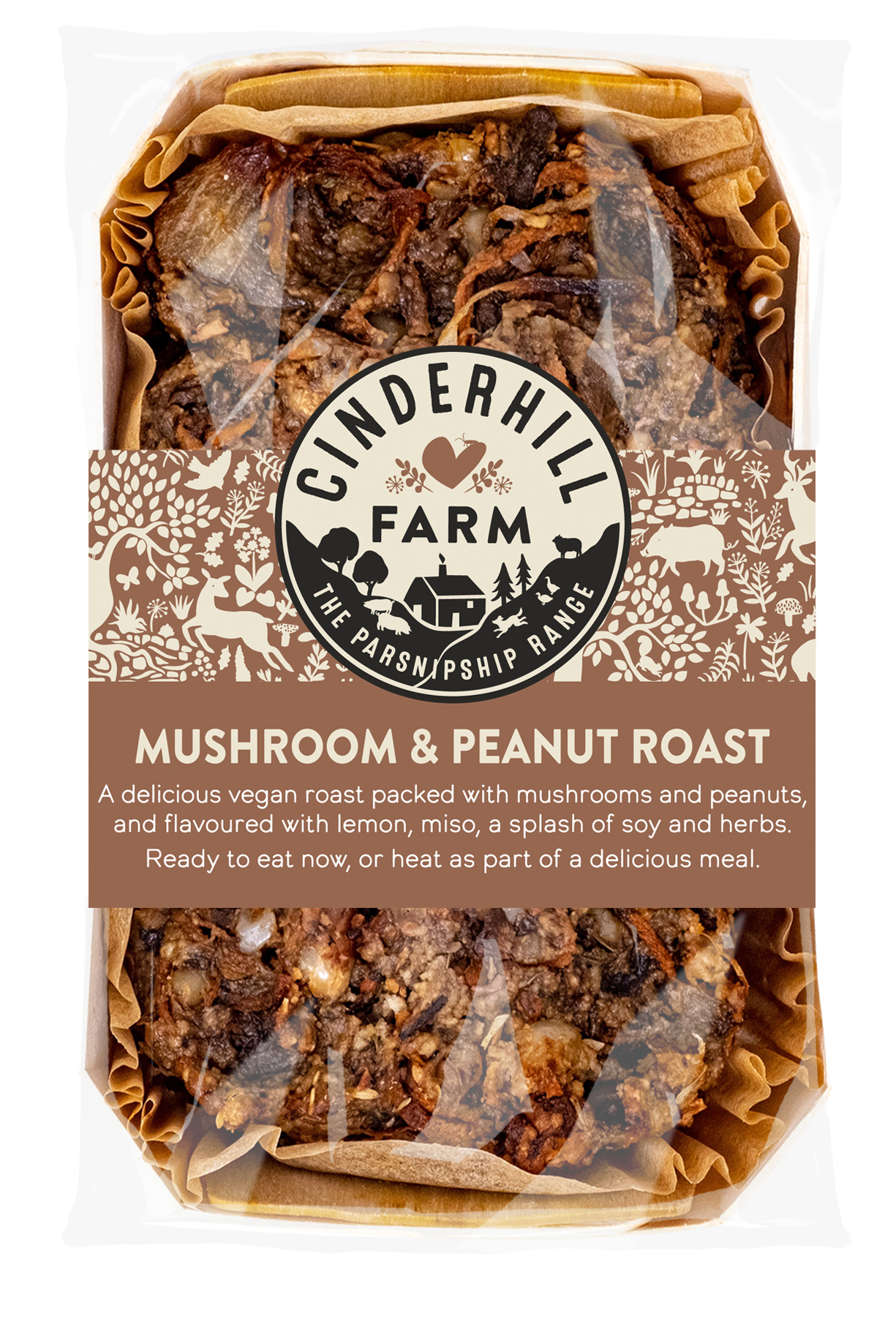 A delicious vegan roast packed with mushrooms and peanuts, and flavoured with lemon, miso, a splash of soy and herbs.
