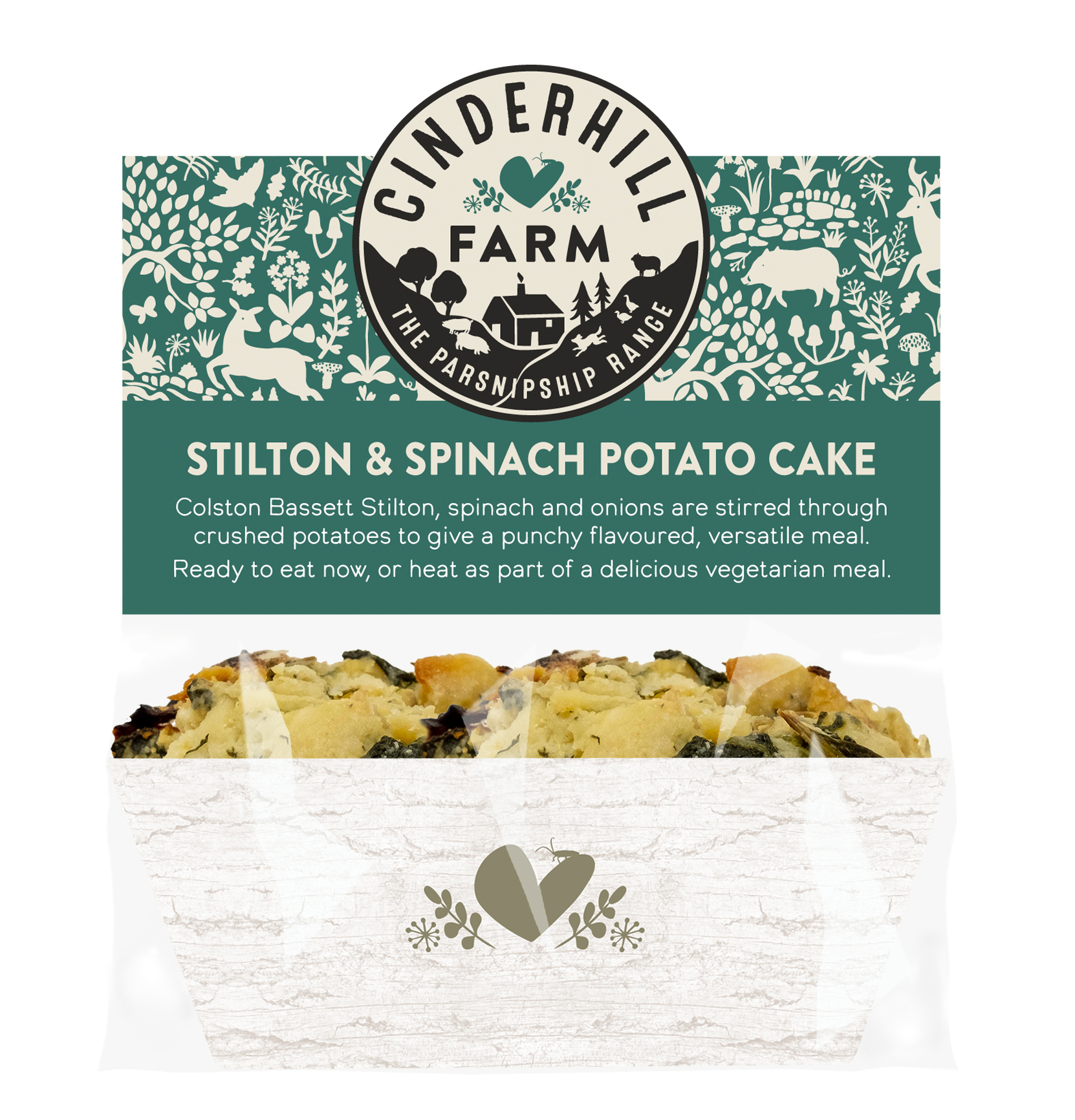 Colston Bassett Stilton, spinach and onions are stirred through crushed potatoes to give a punchy flavoured, versatile meal.